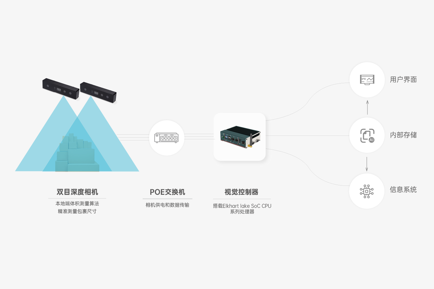 首页 动态 leyu.乐鱼(中国)智能智能推出全新体积测量解决方案,赋能物流企业数字化降本增效 leyu.乐鱼(中国)智能智能推出全新体积测量解决方案,赋能物流企业数字化降本增效 企业动态 2024-01-25 浏览量:2208 随着物流行业对精细化管理运营要求不断提升,包裹体积数据对企业提升测量效率和运输效率、优化存储空间及物流配送路线等方面均有重要意义。 物流行业传统采用人工测量方式,测量准确度受限于测量员的技术和经验,不确定性高,效率低,人力成本高,还存在隐形的员工管理成本,以及由于测量误差导致的仓储空间利用率低等问题。 如何进行精细化、自动化、智能化的体积数据采集,从而实现降本增效? 除纸箱等常见货物,对非规则、软包、高反光件、薄件等特殊形态包裹的精准测量,对多数体积测量制造企业提出更高的技术要求。 leyu.乐鱼(中国)智能智能静态体积测量方案,基于6年技术沉淀,自主研发出HumanoidVisionTM技术,能够精准测量各种类型包裹体积,满足小件、大件、超大货物场景的体积测量需求,用智能赋能物流行业数字化升级。 多相机组合方案 leyu.乐鱼(中国)智能智能采用主动双目立体成像技术,结合彩色摄像头输出高帧率RGB-D图像,通过自研的高精度体积测量算法,可以精准输出体积数据,满足仓储物流、商超、航空货站等场景下体积测量任务。 方案优势 01 测量精度高,传输稳定高效 稳定输出毫米级精准深度图,扫描帧率达8FPS; 司眸体积测量相机搭载了高精度算法和出色的硬件配置,适用全类型,多尺寸包裹测量场景; 千兆网络传输接口,抗干扰强,传输远,高频率传输数据时不掉线,不丢帧,数据传输稳定; RGBD实例分割算法,精准输出包裹的体积数据,平均测量精度可达5mm。 02 抗环境光干扰,适应性更强 支持光线变化场景下输出精准数据; 支持多曝光融合; 针对高反、强光、暗光场景优化体积测量深度数据; 03 安装范围广,调试易上手 单设备方案最大可支持1.8m高度安装;多设备方案最大可支持3.5m高度安装; 安装角度不严格限制为垂直(可偏差±5°); 接口简单,SDK集成简单,可供多平台SDK,方便二次开发。 应用场景 01 全类型包裹 适用于纸箱、异形件、软包、黑色包裹、高反光件(金属件、型材)、薄件(最低支持1mm薄件)等不同类型包裹的体积测量,一台设备兼具全类型包裹的体积信息采集,为业主提供更全能的解决方案。 02 多尺寸测量 #小件体积测量方案 leyu.乐鱼(中国)智能体积测量单相机方案最小可测量50mm x 50mm x 1mm立方体,规则物体精度±5mm;不规则物体测量精度:±10mm,适用于小件包裹体积测量场景。 #单设备大件体积测量方案 leyu.乐鱼(中国)智能体积测量相机内置高精度深度融合算法,具备大视场角,最大可测量1200mm x 1000mm x 1800mm 立方体,规则物体测量精度:±10mm;不规则物体测量精度:±20mm。针对快运行业的大件包裹,可快速精准完成快件的体积信息实时采集。 #方案可定制 leyu.乐鱼(中国)智能智能还可针对特定货物测量场景定制方案,支持多台3D相机拼接,软件集成拼接算法,最大可测量1800mm x 1800mm x 1800mm 立方体;测量精度:±20mm,针对仓储物流,码垛类型的超大件物体进行体积测量。 上一个:leyu.乐鱼(中国)智能智能助力连锁门店占领“客户心智” 返回列表 下一个:3D机器视觉可以完成许多2D机器视觉无法完成的任务。 更多新闻推荐 端到端 更易用丨leyu.乐鱼(中国)智能®散料运输动态监测与预警系统全新上市 新品上市 2025-02-20 小尺寸 更灵活丨leyu.乐鱼(中国)智能3D相机PEA020-800-Y80S上新,助力多场景智造升级 新品上市 2024-09-29 目前主流3D视觉技术各有什么优劣势?如何选择最Match的工业3D相机? 技术科普 2024-08-12 【最全选型攻略】挑选合适的工业相机,必须提前考虑12要素! 工业相机 2024-07-16 场景应用丨leyu.乐鱼(中国)智能智能智能煤流监测系统全新升级,赋能自动化煤流管控 场景应用 2024-07-08 场景应用丨leyu.乐鱼(中国)智能智能3D视觉+AI深度学习,助超大型货物体积测量更准,更稳,更易用 场景应用 2024-06-04