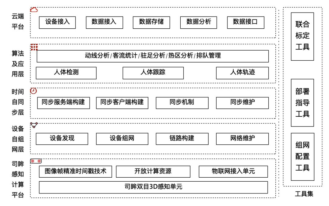 首页 动态 新品首发 | 双目视觉「多相机多目标」人体跟踪算法模型 V1.0 新品首发 | 双目视觉「多相机多目标」人体跟踪算法模型 V1.0 技术前沿 2020-03-21 浏览量:1882 01 🎙️你们要发布的是什么? 2020年3月21日,leyu.乐鱼(中国)智能智能于国内率先推出基于双目立体视觉的「多相机多目标」连续人体跟踪算法模型 V1.0,实现了「 6 相机级联,覆盖 15 米宽度」,解决了「宽大出入口场景」下人流量精准统计的行业痛点需求问题。 leyu.乐鱼(中国)智能公司本次技术创新的一大特点,是在不增加硬件、不增加计算成本的情况下,通过算法上升级迭代,实现多相机自动化协同工作,实现跨相机连续人体目标跟踪。 本次技术的升级迭代成果,已成功应用于leyu.乐鱼(中国)智能公司自主研发的司眸®️ 双目客流一体机产品系列。 02 🎙️什么是人体跟踪技术? 当下,目标检测和追踪的研究,不管在工业届,还是学术界,均是一个热点。在工业届leyu.乐鱼体育所能熟知的有 Amazon Go 的店内全域跟踪技术,已伴随着无人店的热潮进入到人们的视野。在学术届比较有名的有如 OpenPtrack 开源项目,目前因为各类 RGBD 摄像头的普及也使一些应用和案例成为了可能。但目前的研究和应用,主要集中在基于视频流的目标检测、跟踪以及跨境识别 ReID 技术,而对于室内空间的多相机阵列的研究和应用相对较少。 室内空间的人体检测及连续跟踪技术在零售、安防、机场、地铁、政府办事大厅、银行的价值已陆续得到一些验证,并且随着技术的突破和成本的降低,会逐渐成为加速 AI 落地的基础力量。 03 🎙️为什么要做这个创新? 当前,无论是 Amazon Go 还是 OpenPtrack 在对人的检测跟踪技术架构上基本上比较依赖较强算力的运算平台,因此在实际应用中成本是一个比较大的限制条件。 若是能基于较低成本打造出一套稳健的「多相机多目标」人体连续追踪系统,将会大大加快在智能零售、智能安防、智慧城市等场景下的 AI 落地。 而目前在国内,目前尚无成熟的解决方案。在世界范围内,也只有老牌客流品牌 BrickStream 以及专注于机场客流分析的 Xovis 公司有相关产品,但产品过于昂贵,不满足国内市场需求。 图 3D-多相机多目标跟踪原理展示 04 🎙️你们具体是咋做到的? leyu.乐鱼(中国)智能智能基于多年积累的在硬件、软件、算法及领先的边缘计算加速的综合设计能力,立足于现有的司眸®️ 双目视觉感知引擎架构,推出可运行于相机平台、基于双目立体视觉的多相机多目标跟踪技术。具体方案如下: 如图中所示,系统采用分布式计算架构,1 个主模式相机和若干个从模式相机共同组成了整个多目标跟踪系统,其中每个相机采用顶视安装方式。各个相机负责自身所覆盖区域的人体检测与跟踪,最终汇集到主模式相机进行数据关联,产生全局 ID 和全局的轨迹坐标。由于各个相机已承担了大部分运算所需算力,因此数据关联处的算力需求大大降低,无需单独放置服务器用于专用计算。 图 6 相机连续级联多人跟踪 另外,为了使得多目标跟踪系统能稳定的运行,整个系统采用了如下图的设计架构,硬件基于司眸®️ 双目视觉感知引擎架构,3D 感知单元提供实时稳定的深度图计算,图像帧精准时间戳技术配合时间自同步模块可在不通过物理激励同步的情况下将不同设备间的图像帧同步在一帧误差以内,设备间时钟系统同步精度控制在 1ms 以内。针对嵌入式 CPU 研发的人体检测及跟踪算法,在单相机可提供稳定的 98% 以上的跟踪精度,多相机组配合方案提供的高精度标定工具仍能达到 95% 的精度。 此外,设备端具有物联设备接入功能,能实现云端的数据接入以及云端的监控运维,大大助力了方案的可落地性。 05 🎙️你们方案有什么亮点? 「完整的框架设计及工具集支持」 方案除了提供基本的多相机多目标跟踪的基本支持软硬件及算法,还配备了助力于方案落地的工具集,使整个方案可快速面向室内空间,进行商业化落地。 「 100% 边缘端计算」 相较于市面上的其他方案,此方案完全基于嵌入式方案构建,无需单独的服务器,一方面降低了系统的成本,另外一方面因运算过程中不传输任何图像数据,使得此方案具备先天的隐私安全性。 「低成本的设备运维」 方案在自动化组网和状态恢复上做了充分的设计保障,同时所有设备状态可以很方面的接入至云平台,因此规避了以往多设备联合工作的维护复杂性,大大降低了维护成本。 06 🎙️这个技术未来用在哪? 本次发布的方案主要针对于室内区域空间的人体跟踪场景,可应用于如实体门店的消费者分析、银行的安防监控、机场、高铁站、地铁站安防监控、客流分析、队列管理等场景。 上一个:重磅 | leyu.乐鱼(中国)智能第三代4.5K双目视觉感知引擎架构全球首发 返回列表 下一个:3D机器视觉可以完成许多2D机器视觉无法完成的任务。 更多新闻推荐 端到端 更易用丨leyu.乐鱼(中国)智能®散料运输动态监测与预警系统全新上市 新品上市 2025-02-20 小尺寸 更灵活丨leyu.乐鱼(中国)智能3D相机PEA020-800-Y80S上新,助力多场景智造升级 新品上市 2024-09-29 目前主流3D视觉技术各有什么优劣势?如何选择最Match的工业3D相机? 技术科普 2024-08-12 【最全选型攻略】挑选合适的工业相机,必须提前考虑12要素! 工业相机 2024-07-16 场景应用丨leyu.乐鱼(中国)智能智能智能煤流监测系统全新升级,赋能自